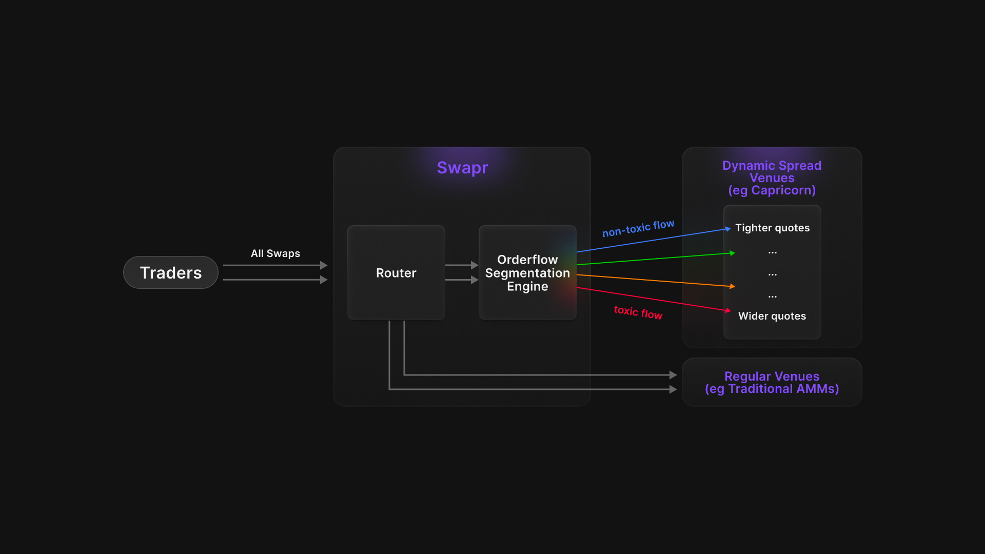 First stop: Capricorn. Swapr will route the nontoxic flow into Capricorn’s Private Liquidity Pool, screening every trade and unlocking tighter quotes while safeguarding LPs.